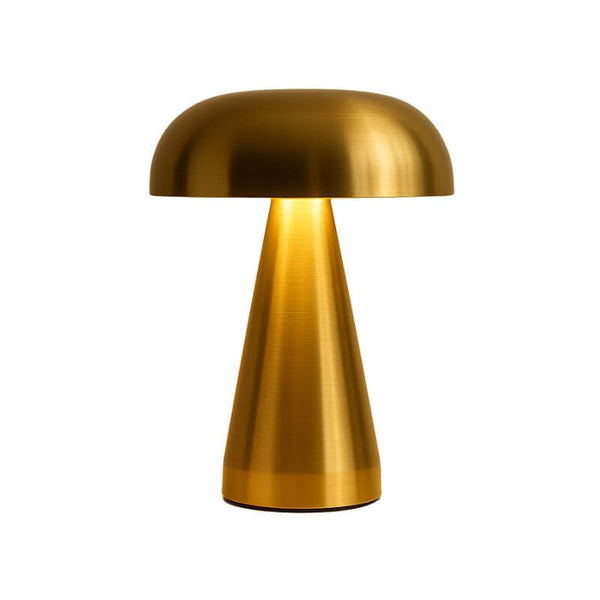 Feita 100% em metal com acabamento dourado escovado, sua forma inspirada em cogumelos entrega originalidade e fluidez visual. A luz LED integrada oferece eficiência energética e uma iluminação suave, ideal para criar um clima intimista no quarto, sala ou home office. Um verdadeiro ponto focal de charme e sofisticação em ambientes de estilo moderno, clean e minimalista.
