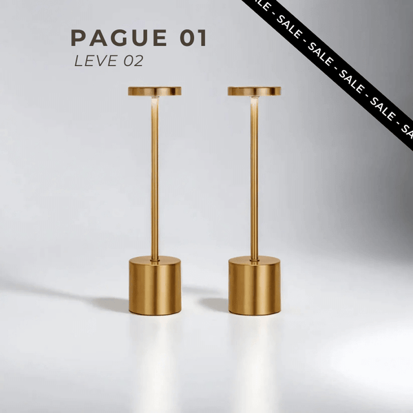 Design Minimalista Moderno: Luminária sem fio com LED integrado, estrutura de alumínio metálico com acabamento em ouro fosco. Base antiderrapante e iluminação em 360 graus, controlada por toque.